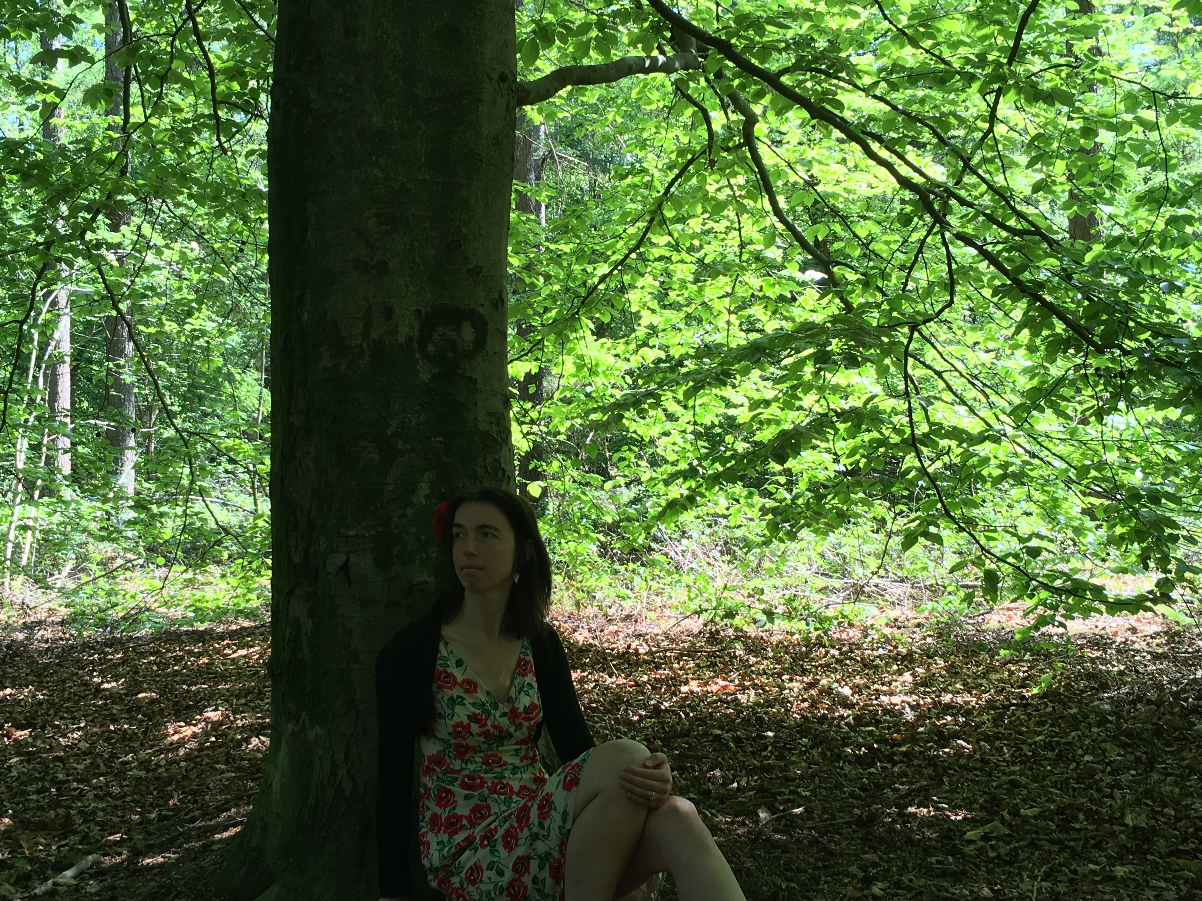 against a tree